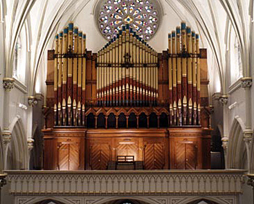 The stained glass windows, the altar and the ORGAN! It was built in 1876 originally for a Centennial Exhibition and it has been playing in over 55,000 Masses since its installation in 1876. It was just recently restored in 2001. How it sounds. The Beauty, the Solemnity.